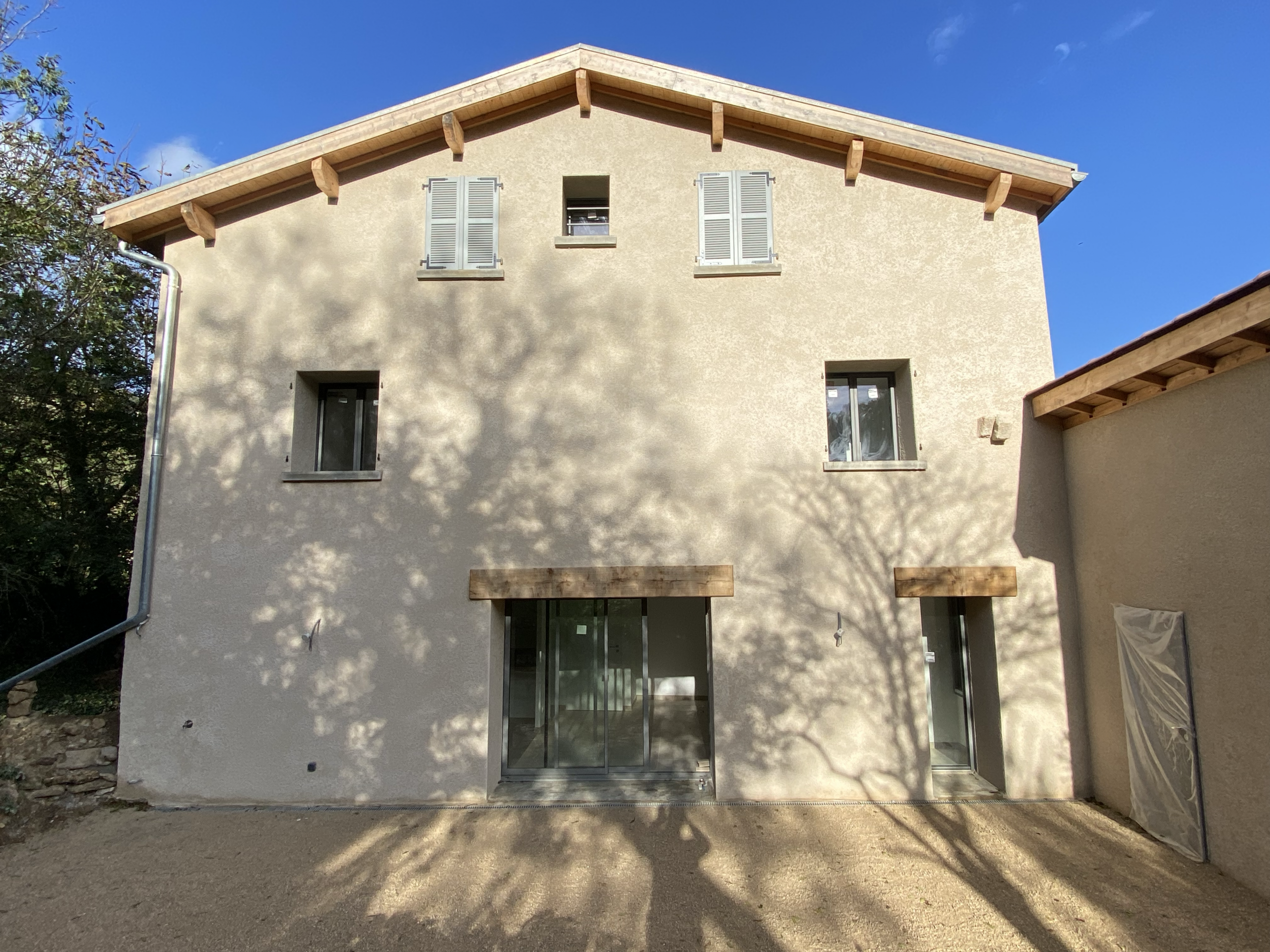 Notre intervention a consisté en un ravalement de façade complet, visant non seulement à restaurer l’esthétique du bâtiment, mais aussi à assurer sa protection contre les variations climatiques. Nous avons procédé à la réfection des enduits, utilisant des matériaux adaptés qui garantissent à la fois une belle finition et une durabilité exceptionnelle. Le résultat final est une façade éclatante, qui s’intègre harmonieusement dans le paysage du Mont d’Or.